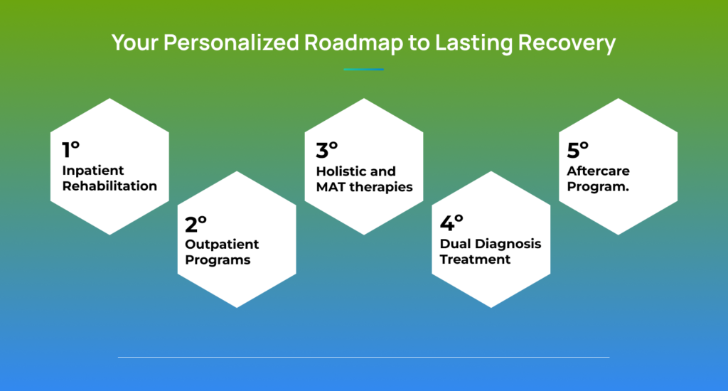 Medically supervised detox, 90 days of intensive or residential outpatient program, medication-assisted treatment, Therapy, and Aftercare group support help to get recovery faster.